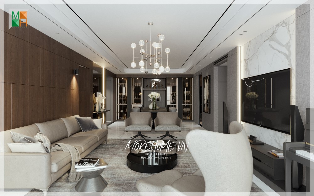 Tinh tế từng ngóc ngách với đá ốp vách phòng khách