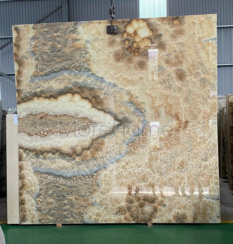 Bạn có thể dùng đá onyx để tạo thành những bức tranh đá sống động trên tường cùng với việc kết hợp các loại đèn trang trí như đèn chiếu rọi, đèn hắt… tạo nên sự hiện đại, trang trọng.