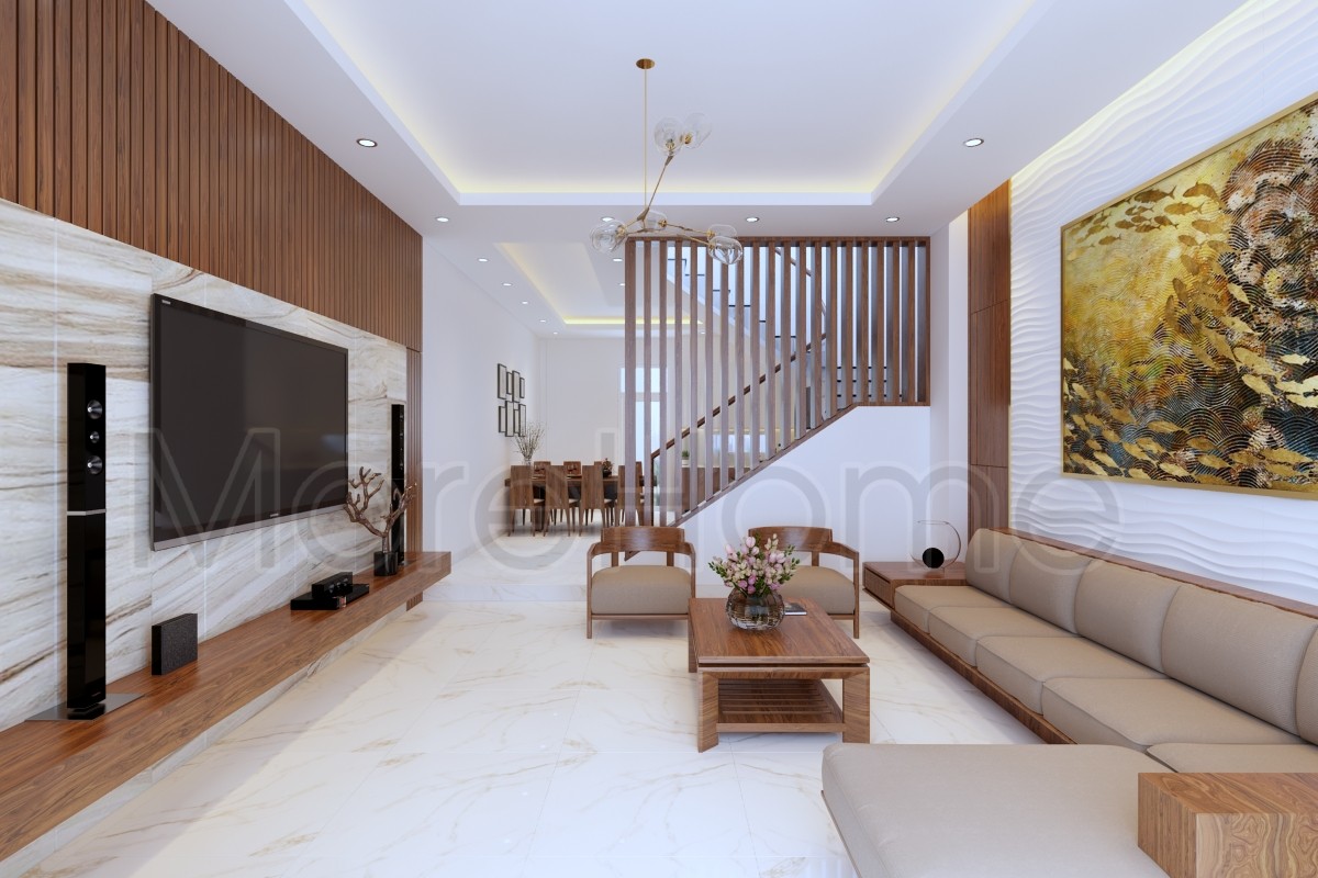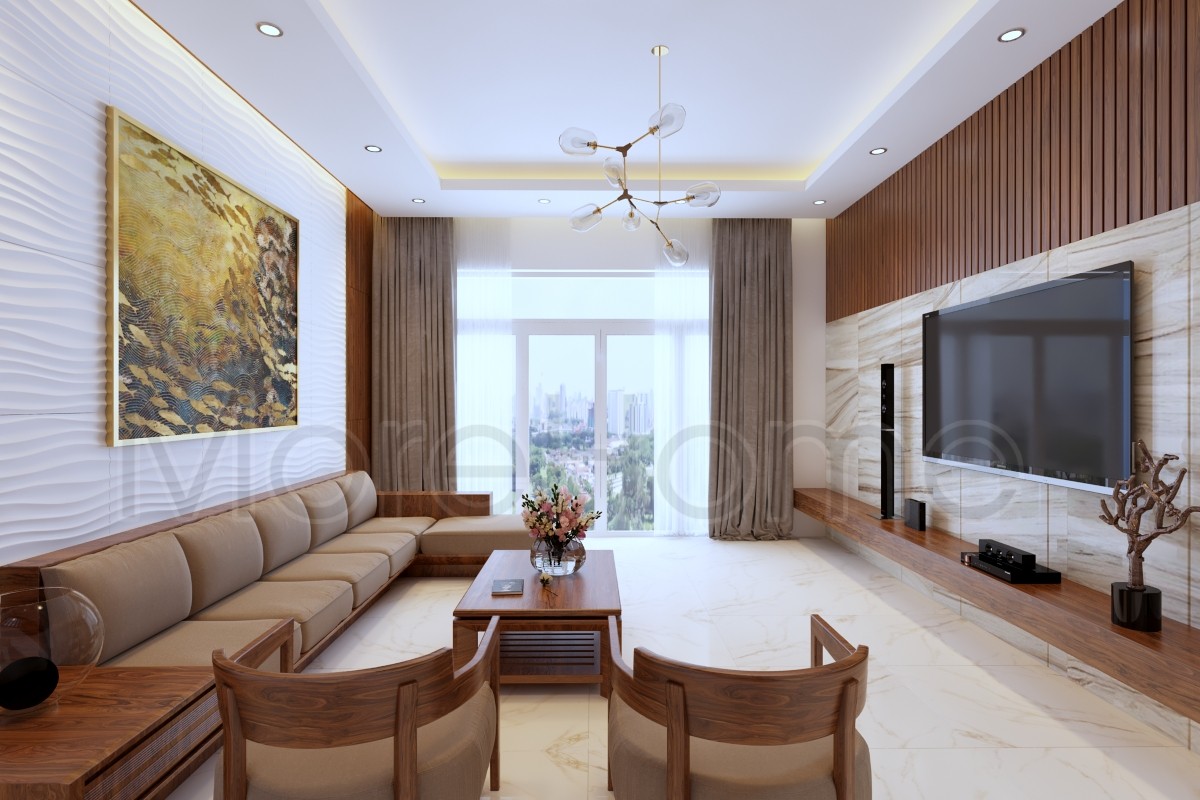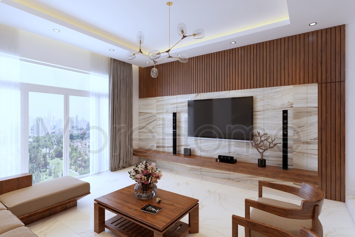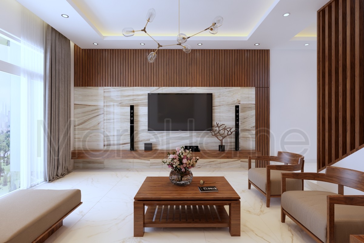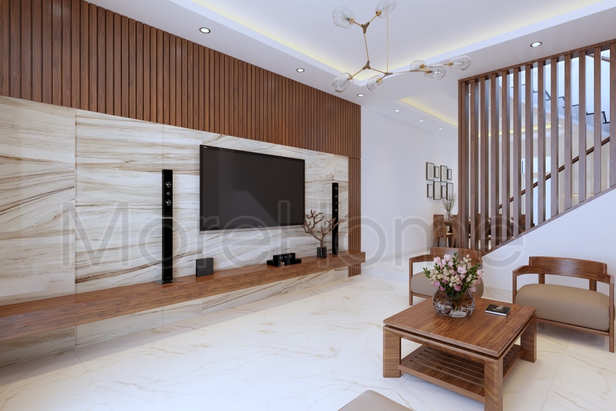Đá vân gỗ MoreStone ốp vách tivi phòng khách là lựa chọn không thể tuyệt vời hơn cho không gian nhà bạn.