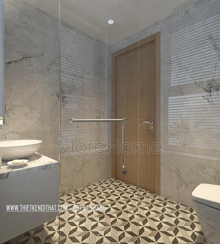 Đá ốp lát sàn, nội thất nhà tắm chung cư Sun Grand
